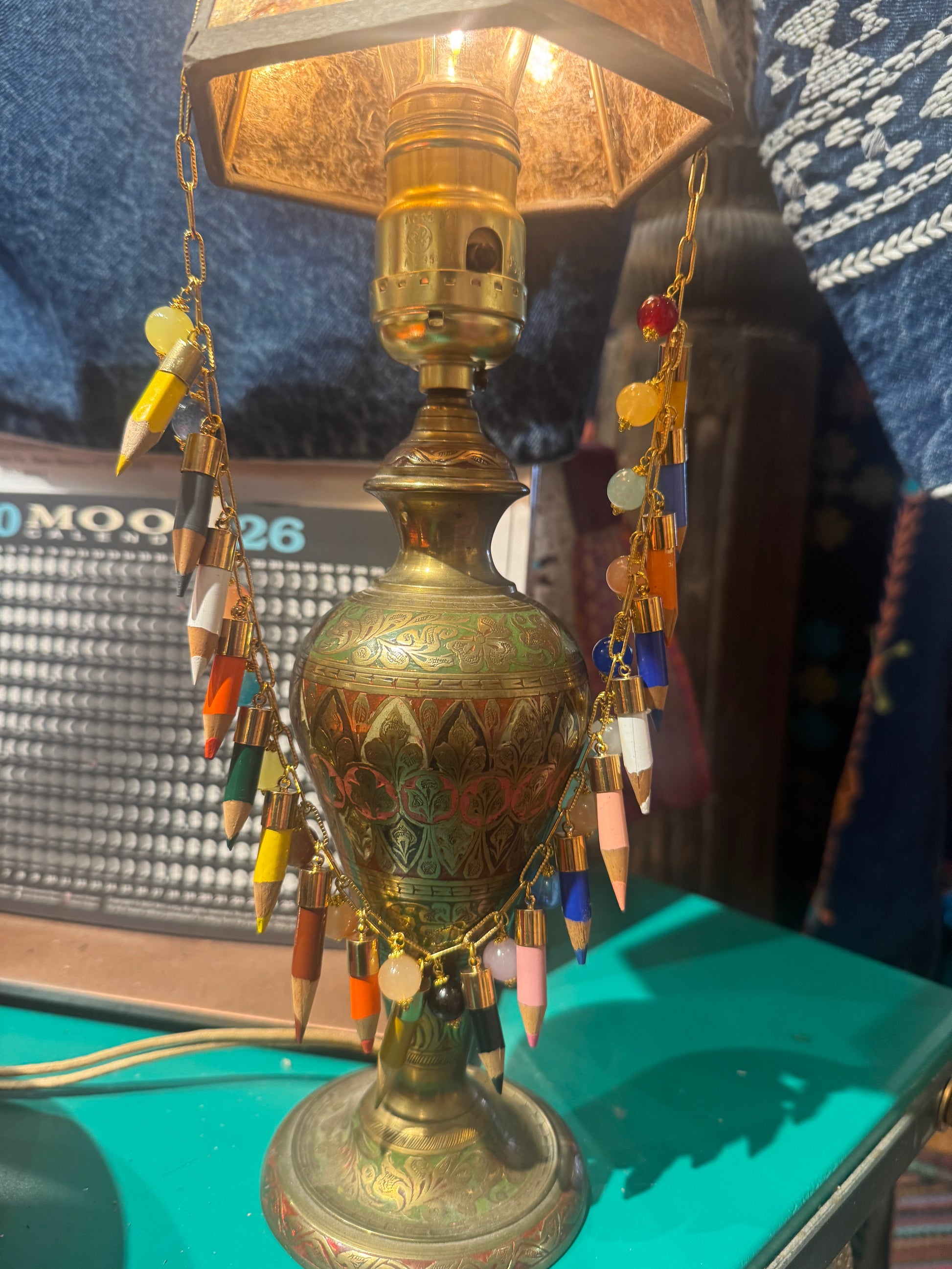 Colorific whimsical necklace! Adorable gold-plate bezels with sharpened colored pencils that actually work! Fun glass and gemstone baubles separate the colored pencil nubs on a gold-plate 23” linked chain. This lightweight, playful piece will be a head turner and conversation starter!