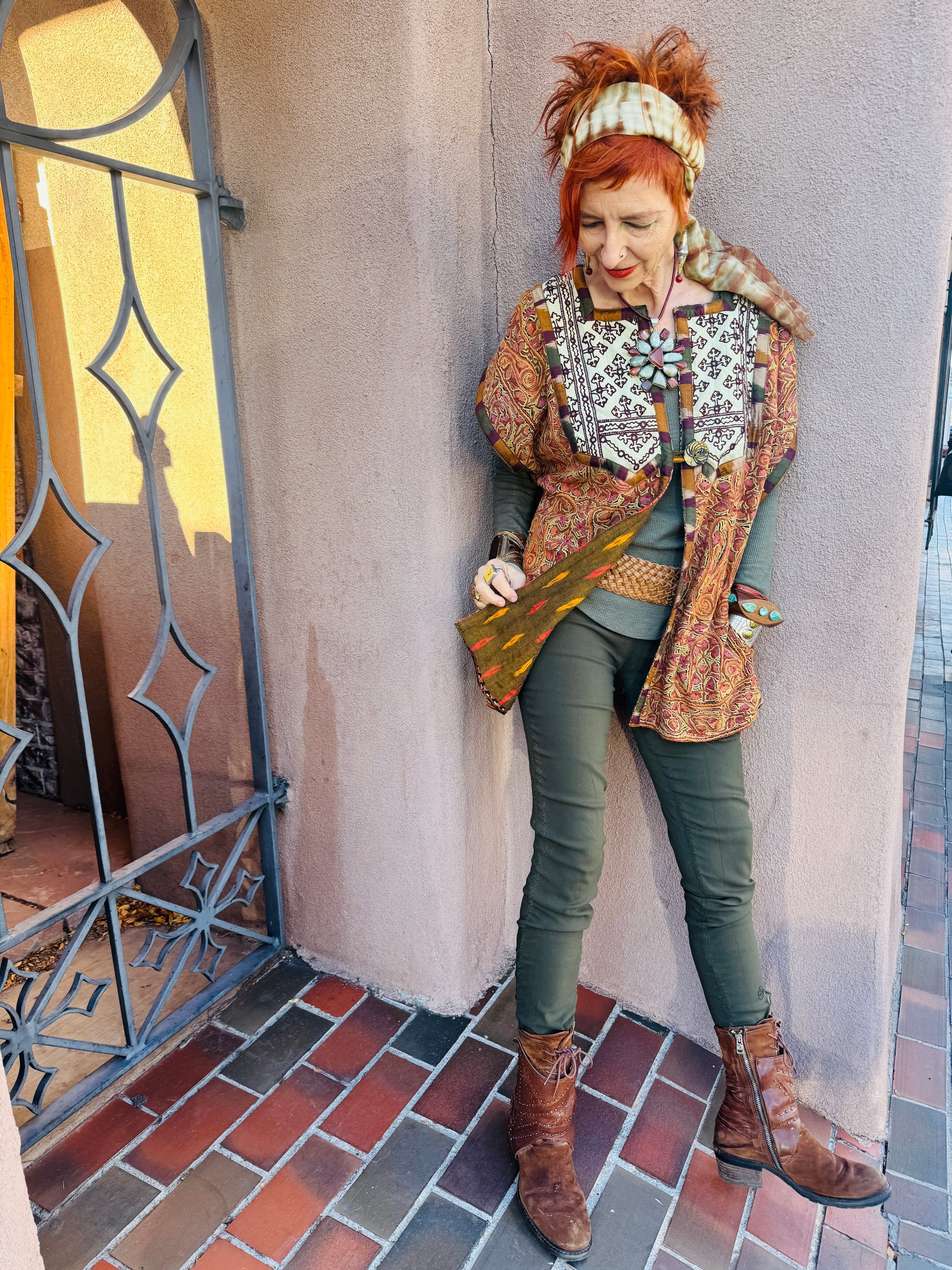 An extra special feel-good purchase! This garment is made lovingly from upcycled textiles. Thank you for helping Mother Earth stay healthy and beautiful. The SERRAHNA Redux Love Line original design keeps discarded materials out of the land fill, and into your heart and on your body for a win-win!