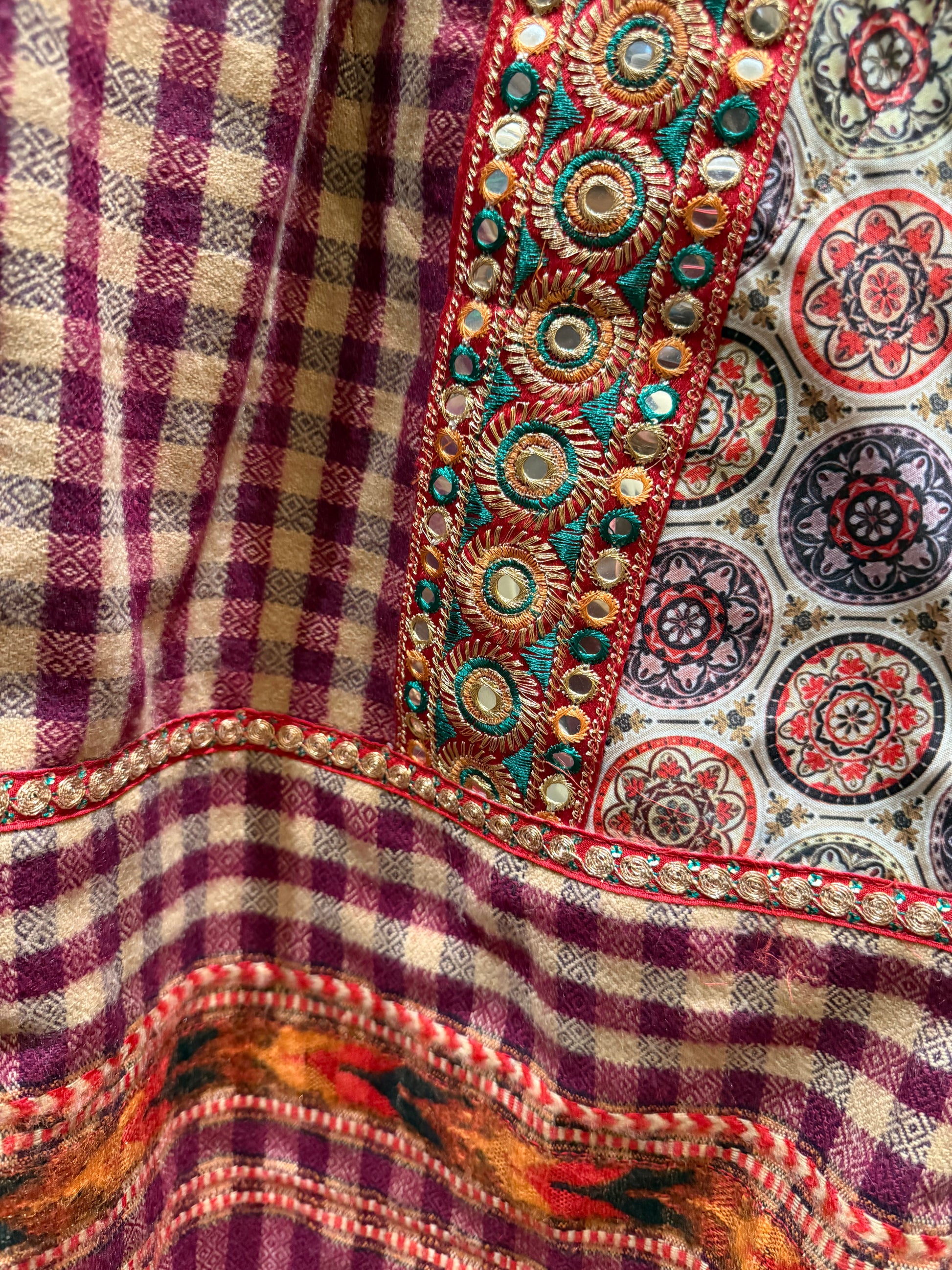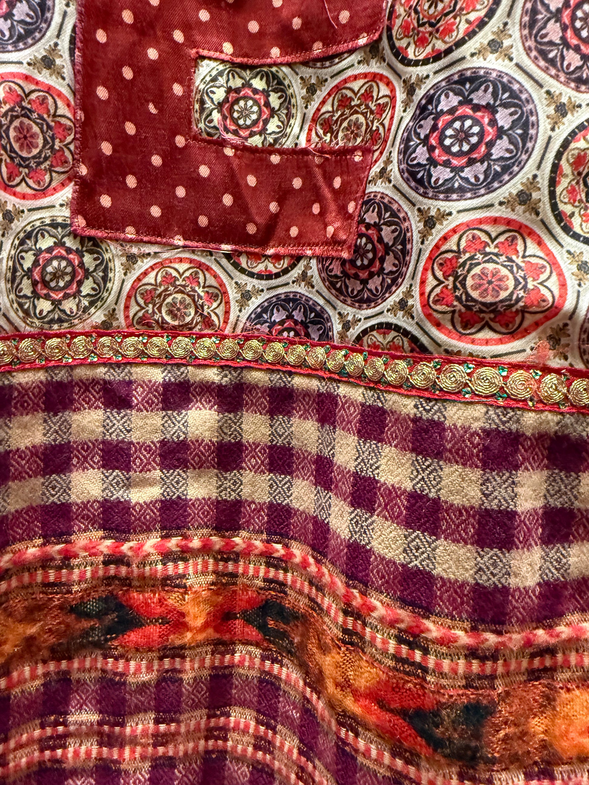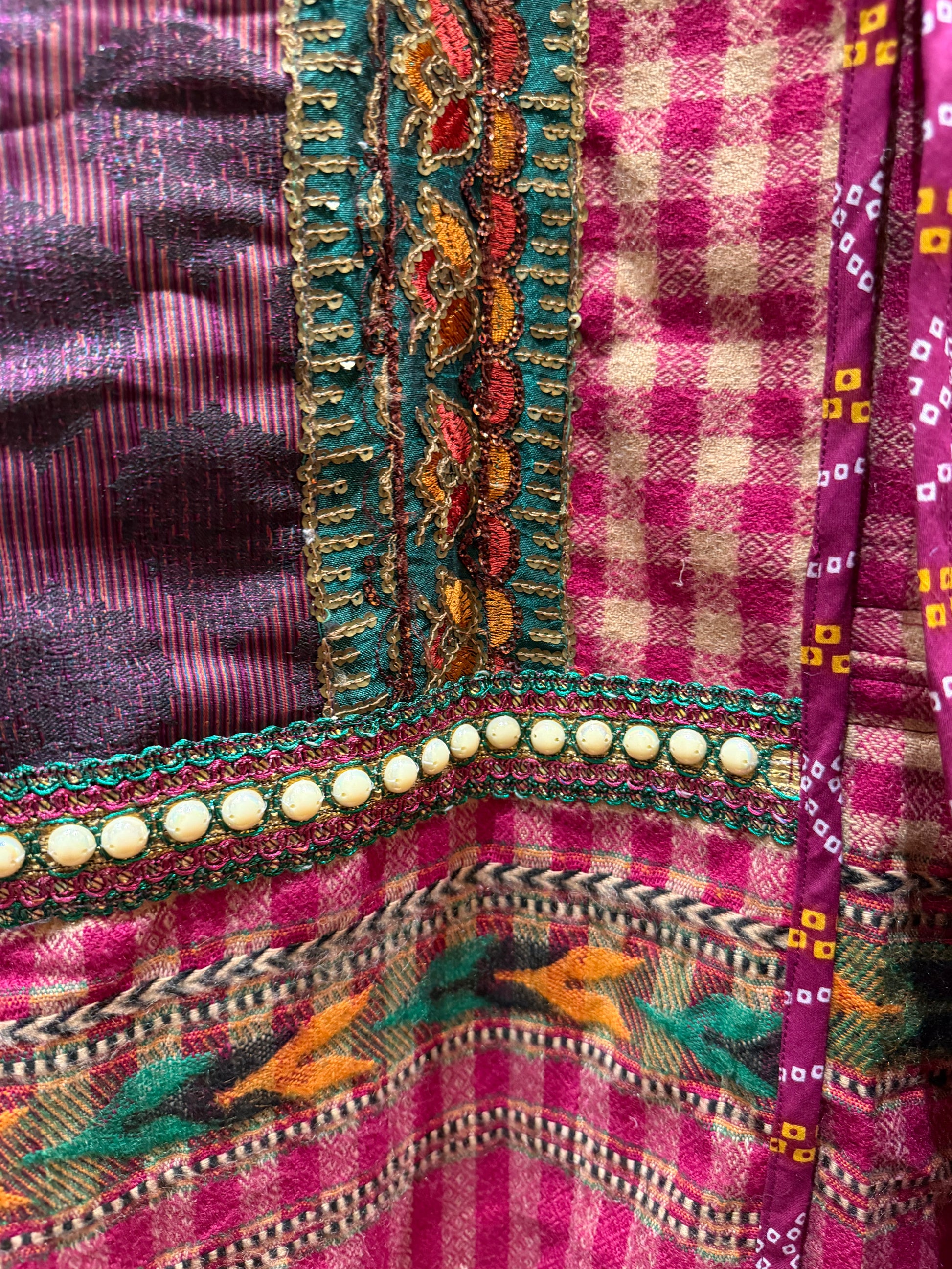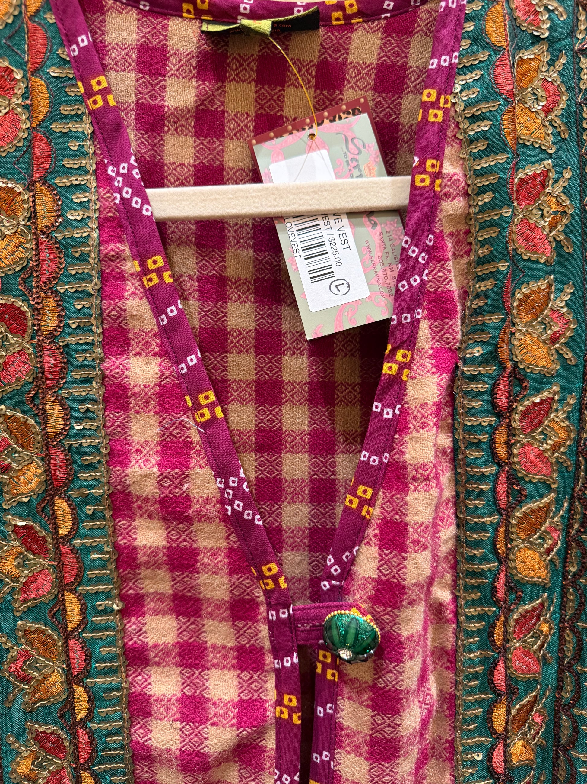 An extra special feel-good purchase! This garment is made lovingly from upcycled textiles. ThankGreat for the holiday season and beyond for helping Mother Earth stay healthy and beautiful. The SERRAHNA Redux Love Line original design keeps discarded materials out of the land fill, and into your heart and on your body for a win-win!