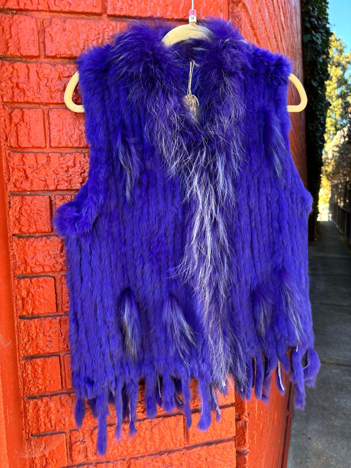 Our soft and cozy rabbit vest is a great under-layer for any of your coats. Knitted vest with fringe and 3 hook closure. Cozy chic, a throwback to Stevie Nicks. We’ve got olive green, black, butter gold, turquoise and cabernet in store now.