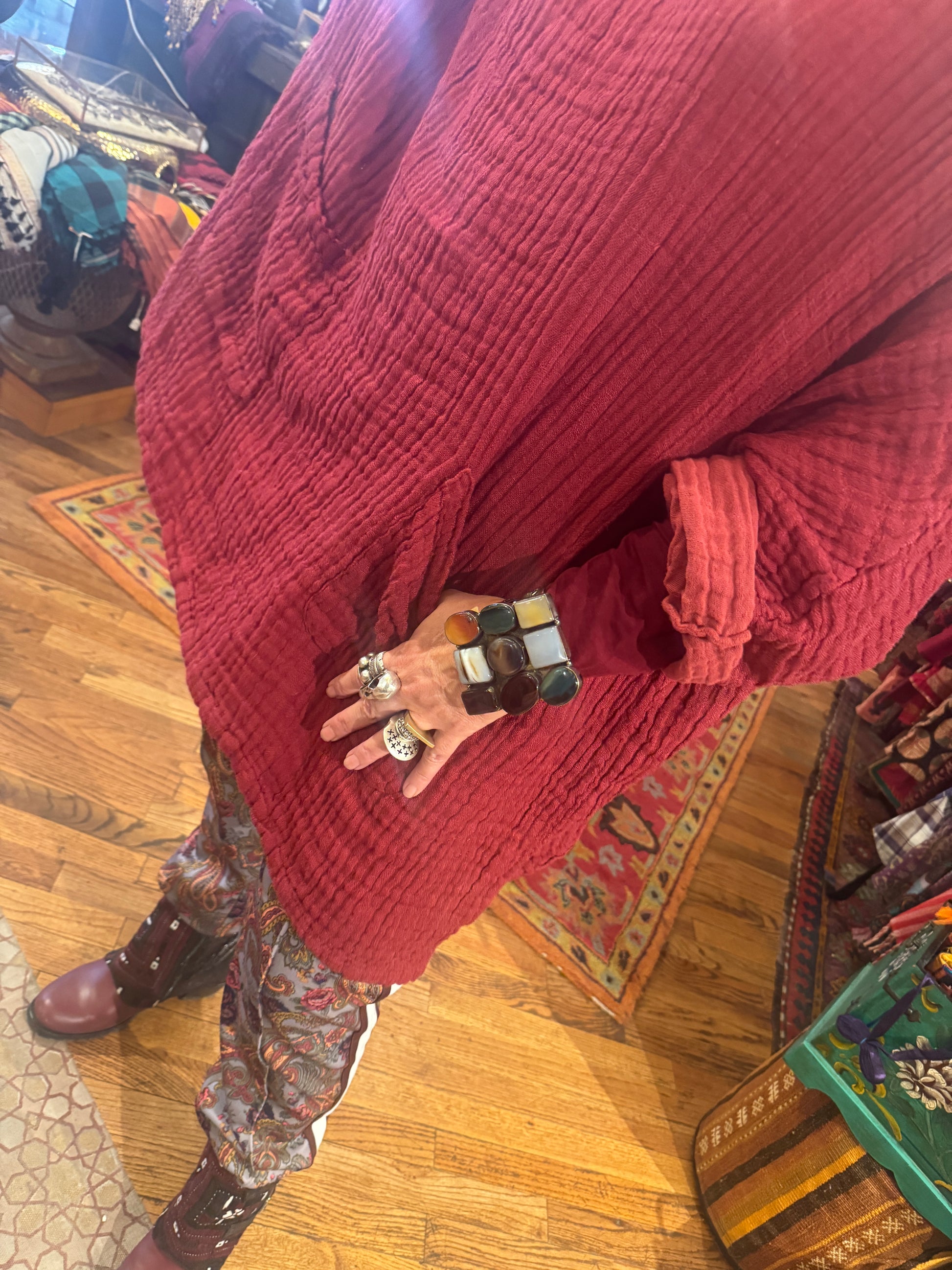 No returns on SALE merchandise. CLOTHING: We want you to be as happy as you can be with your SERRAHNA purchase! If you are not, you may return it for an exchange or refund, meeting the following criteria: You MUST contact us (info@serrahna.com) within 7 days for a Return Authorization (RA). We accept returns of unworn, unwashed, undamaged merchandise. Must be free of any scents/perfumes/smoke smells. Items MUST have original tags attached. Allow several business days for the funds to appear on the original CC used.