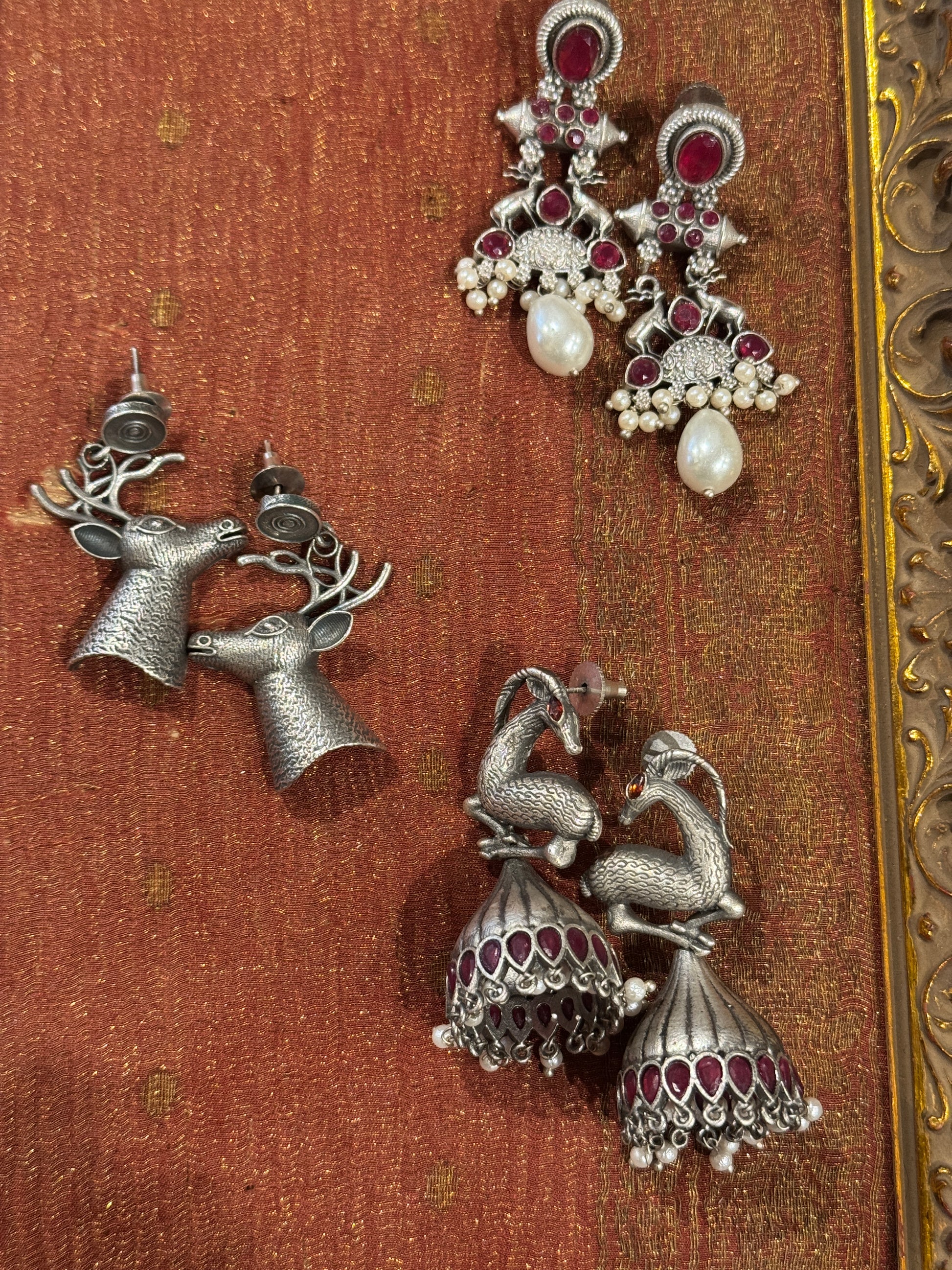 Oh deer....these horned beauties are adornments for your ears. Made from modern day pewter (no nickel), they are light in weight and price. Choose your favorite from our small herd.