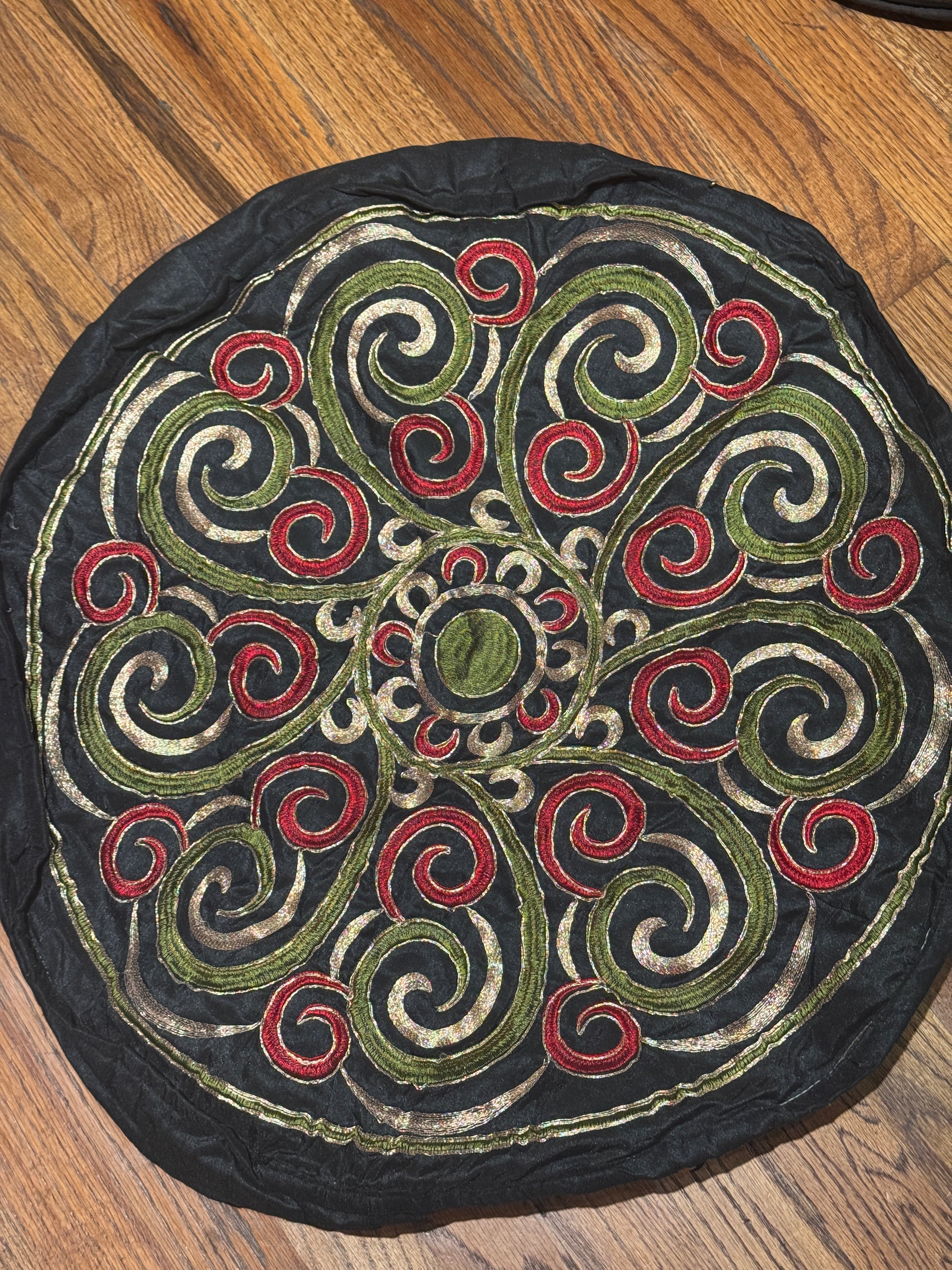These gorgeous poufs are loaded with exotic embroidery in various colors, and will accent your home decor. These pours have a side zipper, which allows you to stuff them with bedding, towels, sweaters, socks. In essence, they are a storage unit for your off-season linens and clothing. Perfect for the small apartment that has limited storage space. 24 inches wide by 11 inches tall. Fully embroidered on top and sides. Synsilk. See each variant for color options.