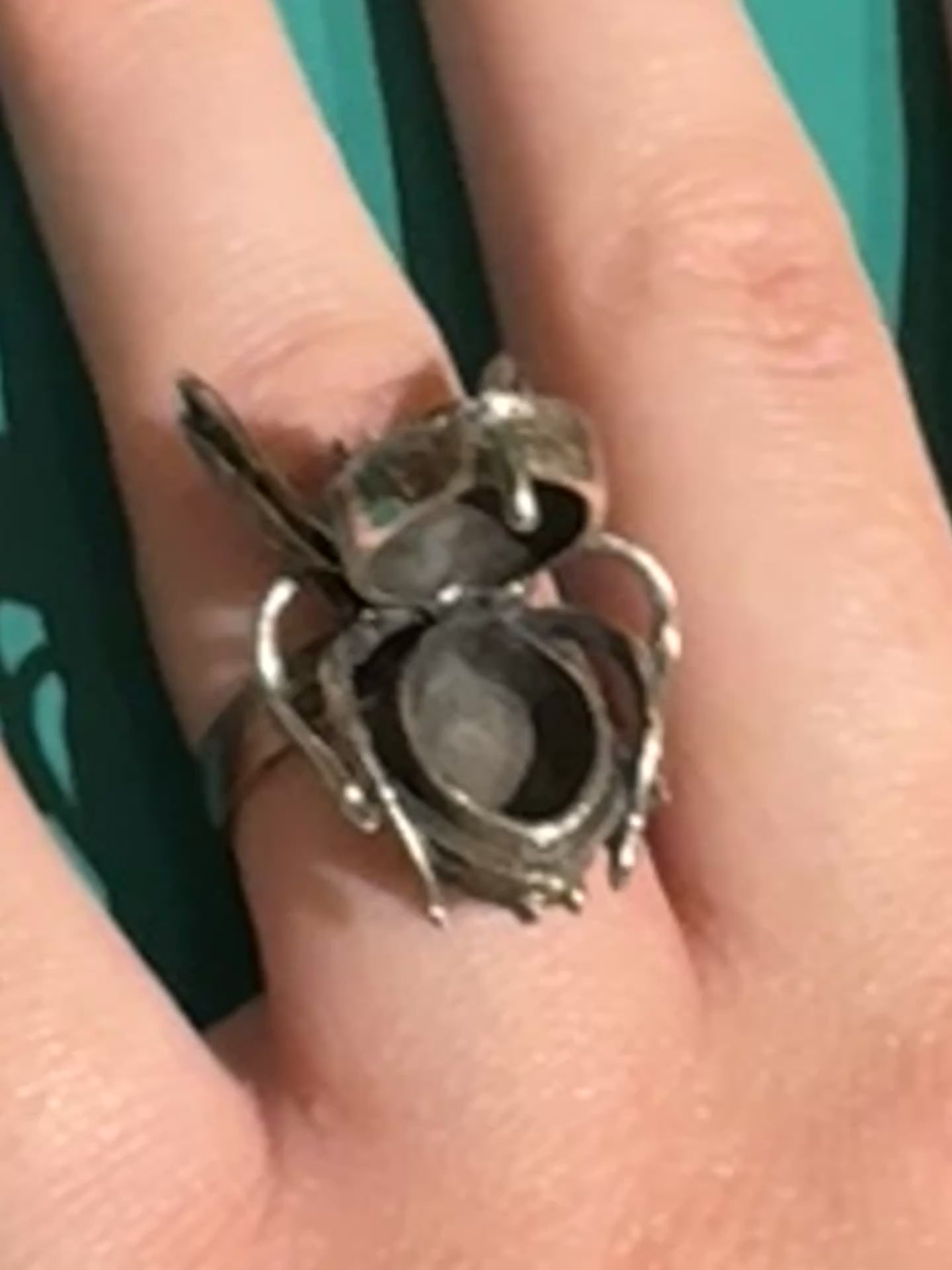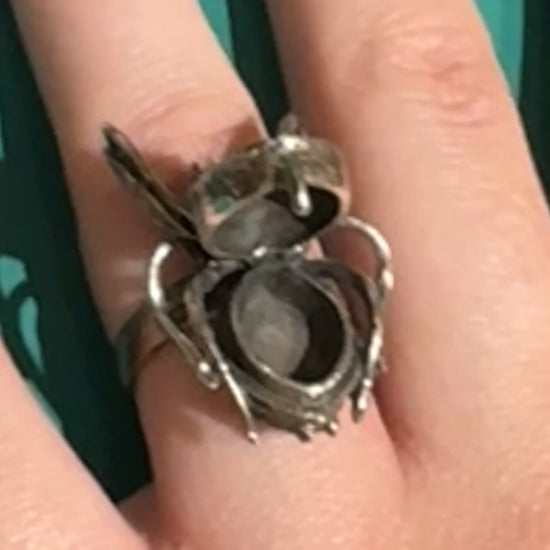 A very unique and beautifully rendered poison ring. Open the spiders back and and place your poison inside. Sterling silver 925. Size 6. One of a kind.